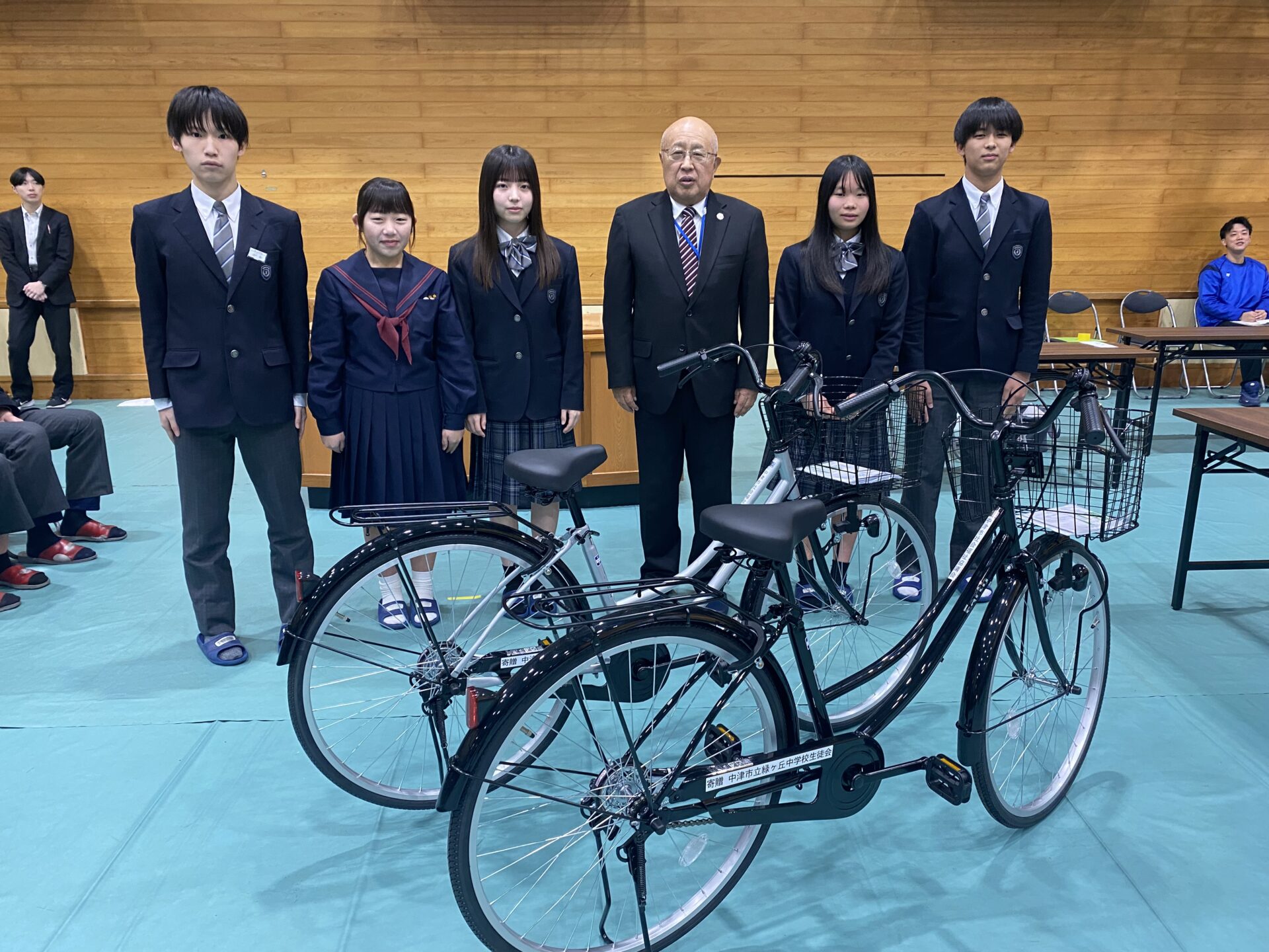 | 3/3 | ![]() | 中津市緑ヶ丘中学校 生徒会 様より 資源回収の益金で購入した自転車2台をご寄贈いただきました。 ありがとうございました。 |