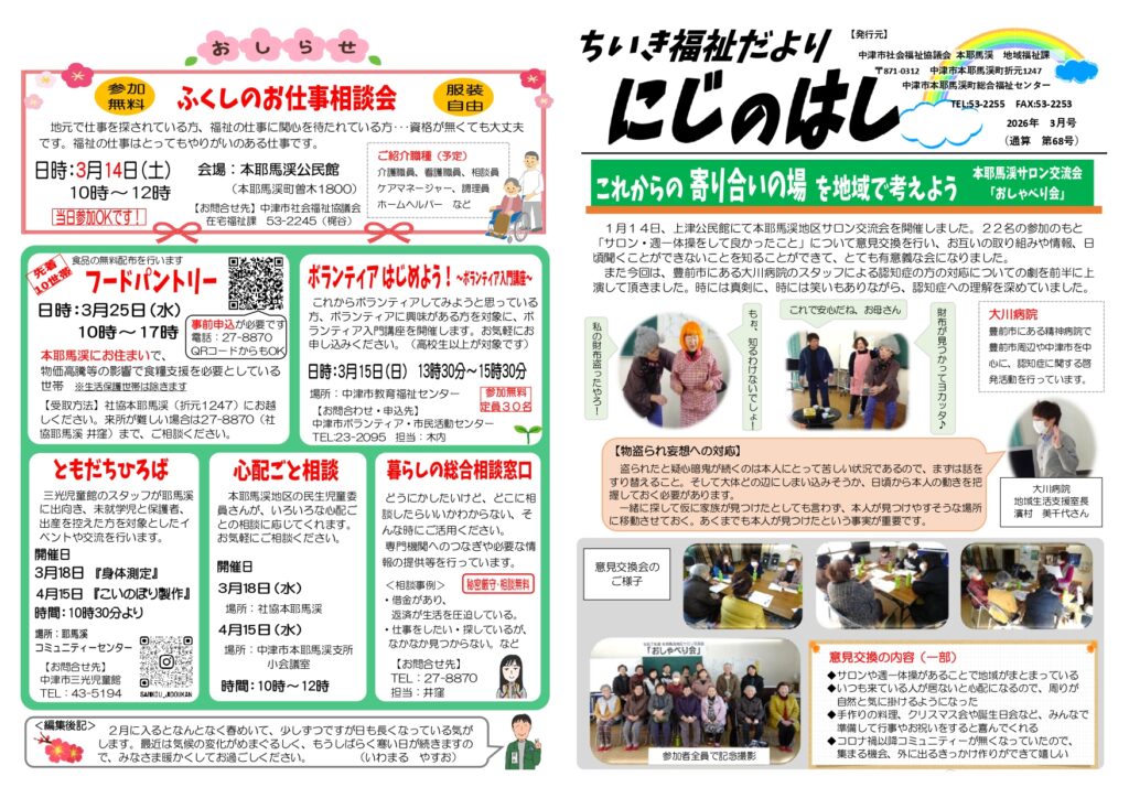 ちいき福祉だより「にじのはし」(本耶馬渓)を掲載しています